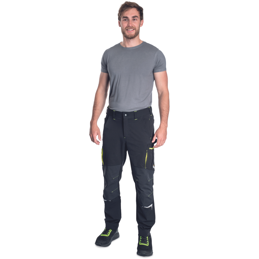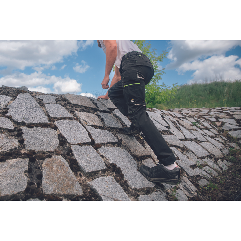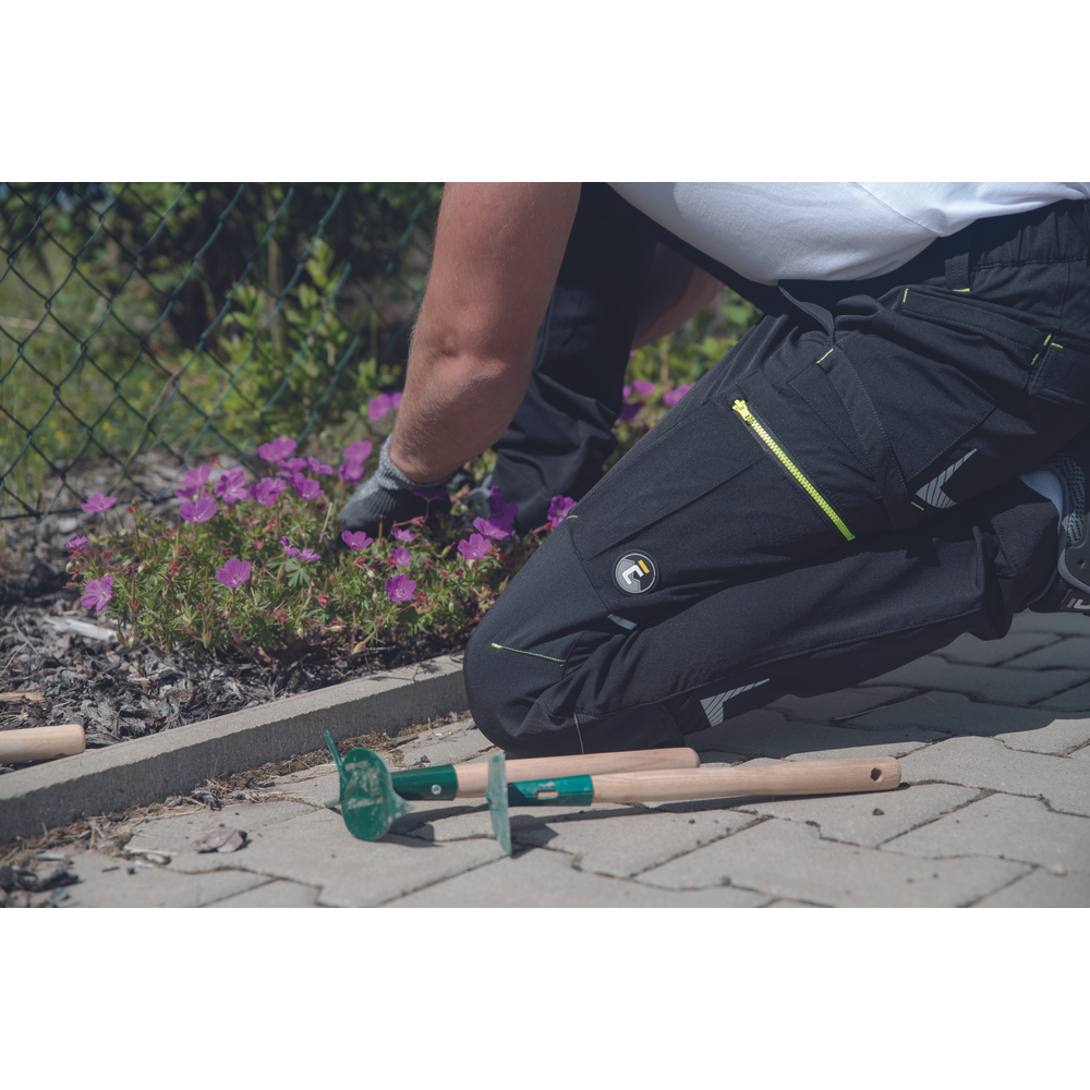 • pohodlné pánské kalhoty ze strecového materiálu • zvýraznené hi-vis a reflexními detaily • zesílení v oblasti kolen s možností vkládání kolenních výztuh • dve prední kapsy • dve zadní kapsy • víceúcelové stehenní kapsy