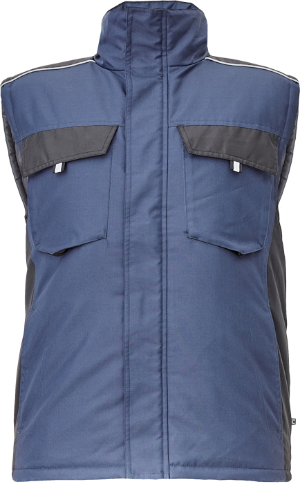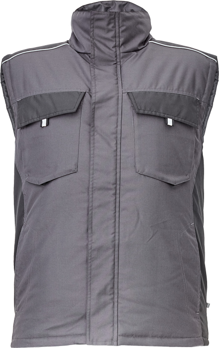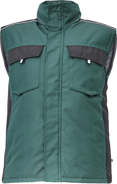 pánská zimní vesta; zapínání na zip kryté légou na suchý zip; 2 boční kapsy, 2 náprsní kapsy na suchý zip; 1 vnitřní kapsa na mobilní telefon; reflexní prvky.