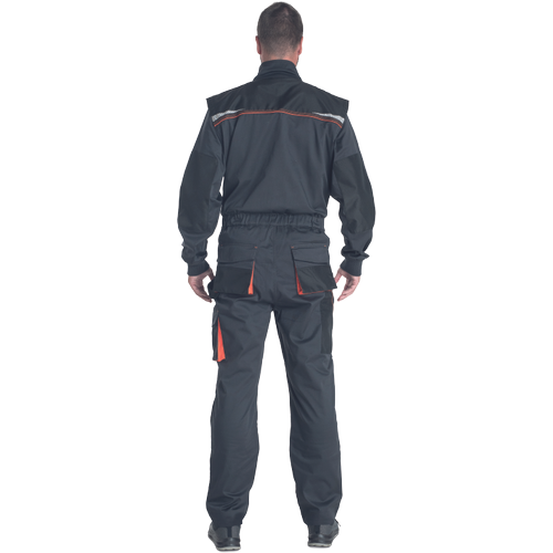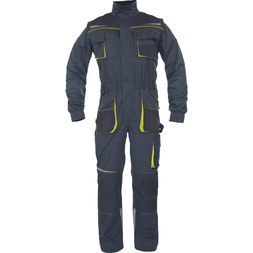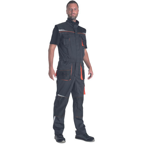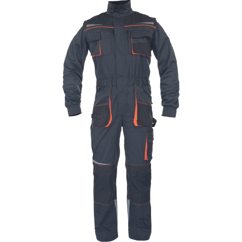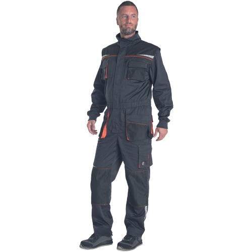 • pracovní vysoce odolný strečový overal s elastickým pasem • multifunkční kapsy • 2 náprsní kapsy z toho jedna na mobilní telefon • Oxford 600D zesílení v oblasti loktů a kolenních kapes pro vložení chráničů kolen • odepínací rukávy s pletenými elastickými manžetami • reflexní segmentové detaily • prodloužitelná délka nohavic