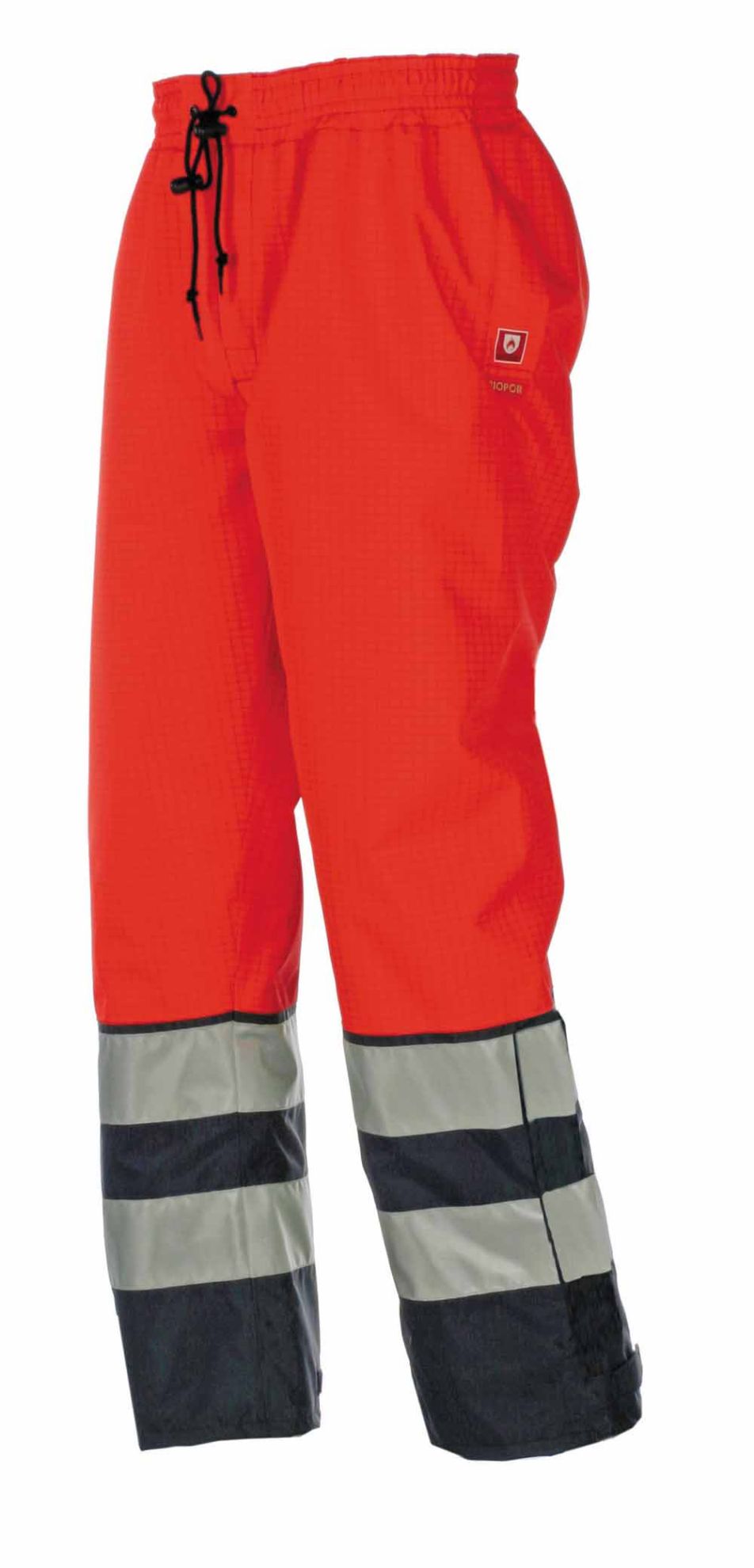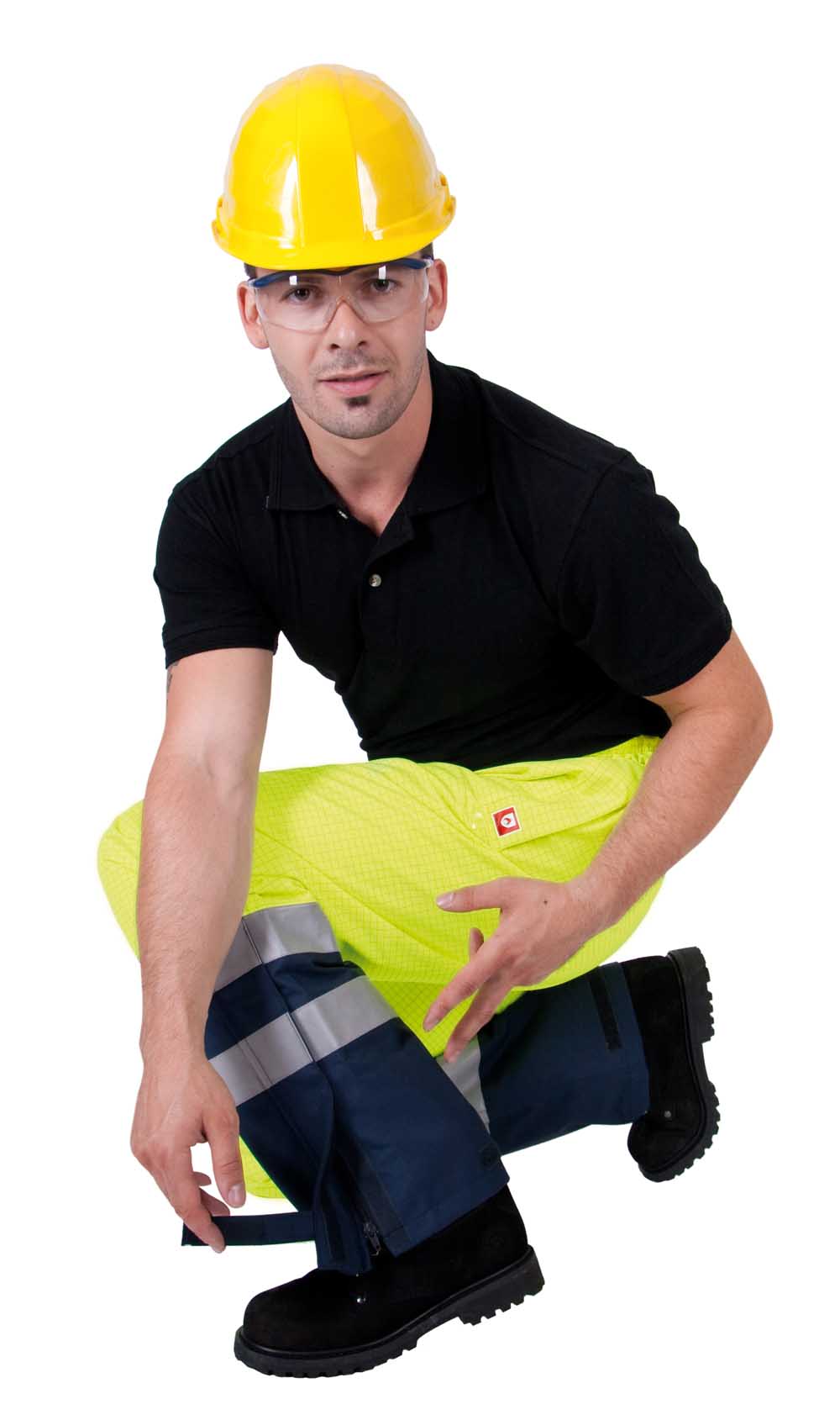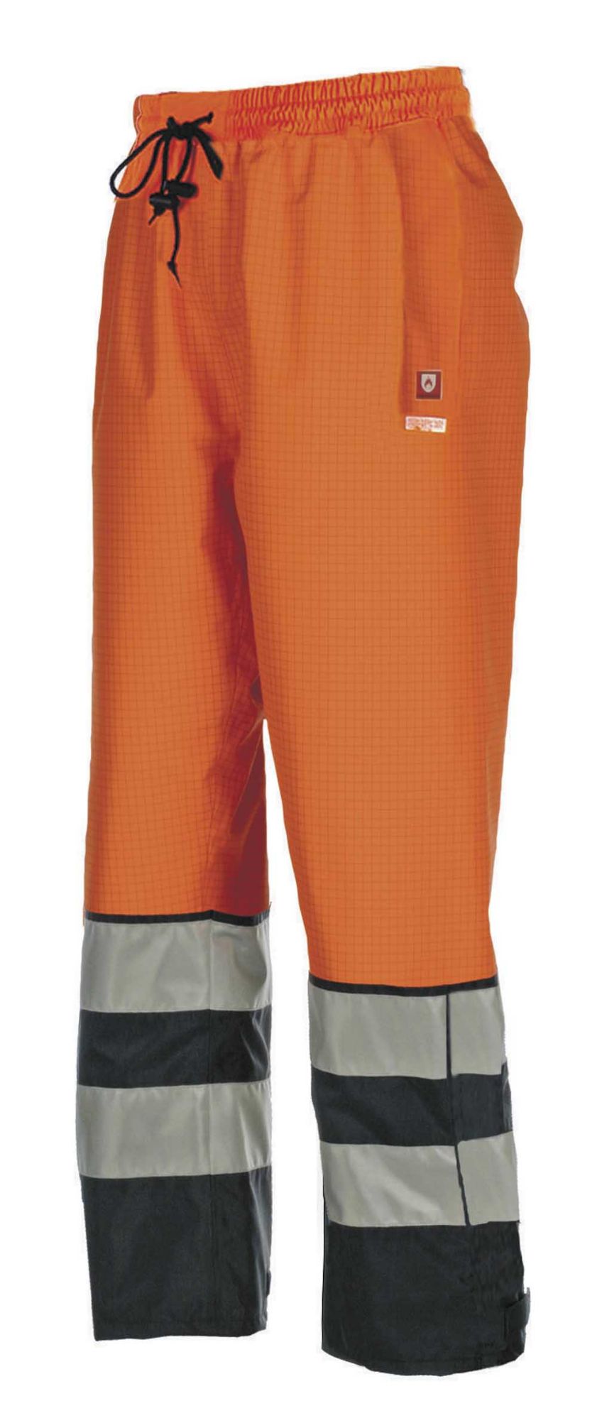 Antistatické, nehořlavé a chemicky odolné kalhoty s pevnou bavlněnou nehořlavou podšívkou a přelepenými švy.