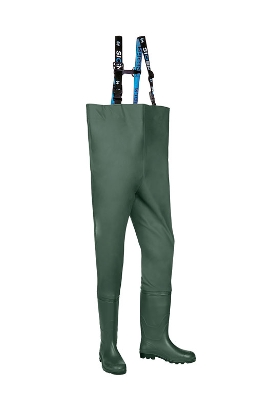 Prsačky s přeskami na šlích s vnitřní kapsou a elasticky stahovatelným pásem.