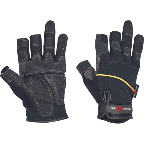 Clarino tlumící vycpávky v dlani, clarino je kvalitní syntetická kůže, elastický hřbet zajišťuje optimální pohyb ruky, zapínání na suchý zip na zápěstí, bez palce, ukazováčku a prostředníku pro maximální citlivost