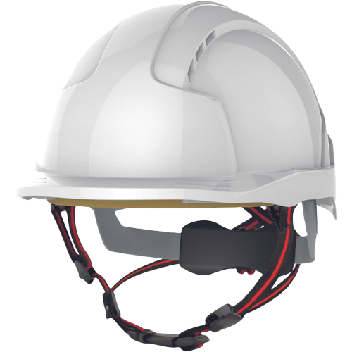 VOLite® Skyworker™ Industrial Working At Height Safety Helmet The EVOLite® Skyworker™ helmet has a suspension system and shell structure that has been designed to be used for industrial, mountaineering, rescue and leisure activities. Meeting the EN12492 standard. A helmet complying to the mountaineering standard is impact tested with two 5kg strikers. A hemispherical striker is dropped from 2 metres onto the crown of the helmet and a flat striker from 500mm on to the front, rear or side by tilting the headform to 30°. In all cases, the transmitted force through the neck of the headform must not exceed 10kN. Two penetration tests with a 3kg pointed striker are also performed within a 50mm radius of the helmet's crown without making contact with the headform.