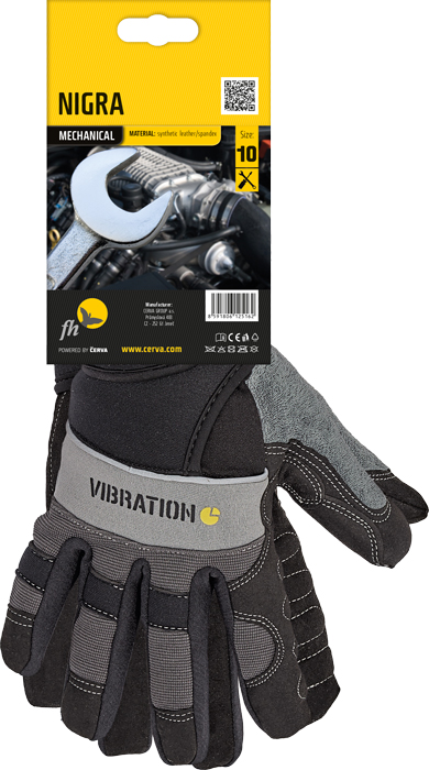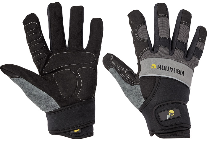 Rukavice z umělého semiše v dlani, Spandexu na hřbetu s chrániči kloubů, s dvojitou stahovací manžetou na suchý zip a antivibračními poštářky na exponovaných místech.