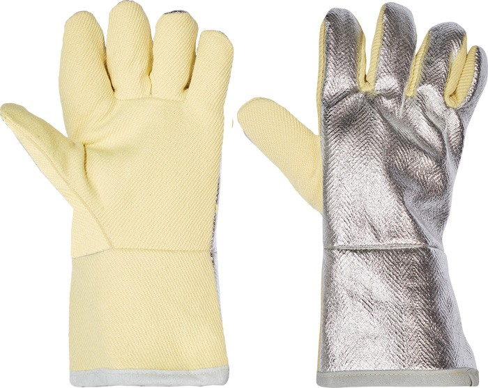 Pohodlné 5-prstové rukavice s pohliníkovaným hřbetem. Široký volný střih poskytuje vyšší komfort. Trojvrstvá konstrukce: vrchní textílie, střední izolační vrstva, vnitřní vrstva ze 100% bavlny pro kontakt s pokožkou. Zakončení manžety zakryté kůží snižuje riziko popálení. Délka rukavice:36cm.
