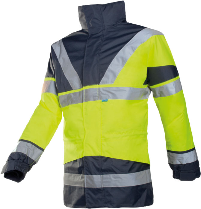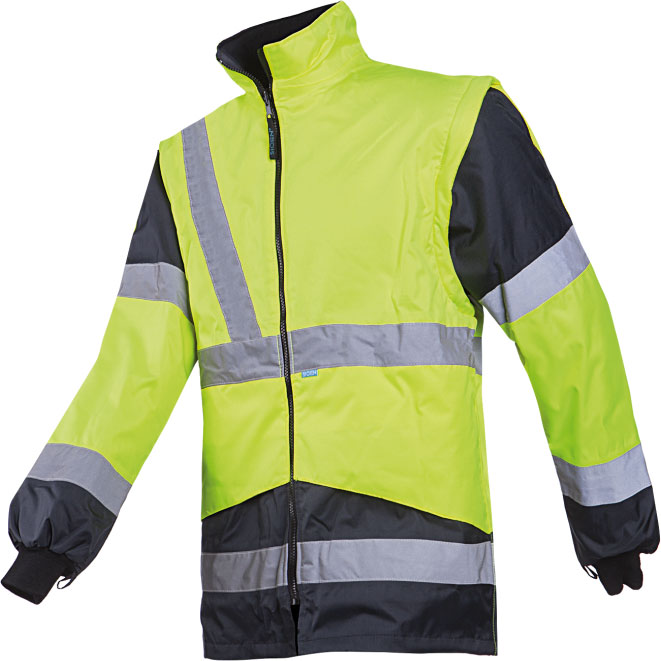 Bunda 4 v 1 s odepínatelnou zateplenou vložkou a rukávy, kapucí v límci, dvěmi vnitřními kapsami, překrytým zipem, vnitřním stahováním v pase, pletenými manžetami v rukávech a prošívanou podšívkou.