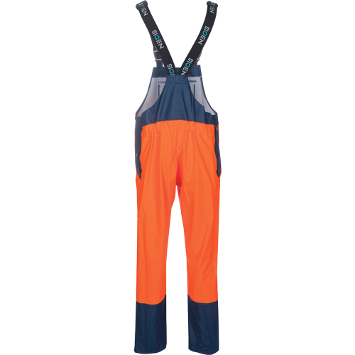pánské nepromokavé kalhoty s laclem a elastickým pasem; 1 velká břišní kapsa; 2 boční kapsy; nastavitelné lacle.