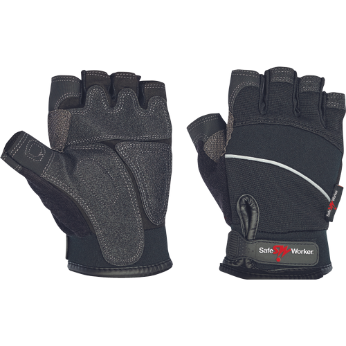 Elastický hřbet zajišťuje optimální pohyb ruky, polstrované tlumící polštářky poskytují extra ochranu, zapínání na suchý zip na zápěstí, bez konečků prstů, s reflexním pruhem na hřbetu ruky