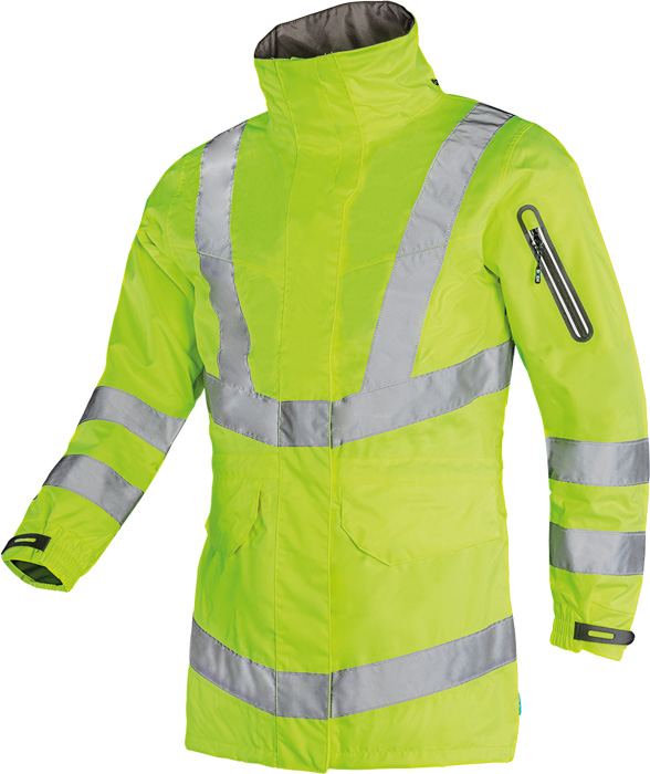 rovný límec; odepínací kapuce se stahovací šňůrkou; ochranou brady a špičkou; zapínání na zip pod dvojitou chlopní s cvočky; 2 vsazené kapsy s chlopní a zapínáním na cvočky; 1 kapsa na rukávu; kulaté vsazené ergonomické rukávy; elastická stahovací šňůrka rukávu s dotykovým zapínáním; větrání podpaží; stahovací šňůrka v pase; reflexní proužky (50 mm); délka zadní části 81 cm (L); kompatibilní se softshellovou bundou JERICA