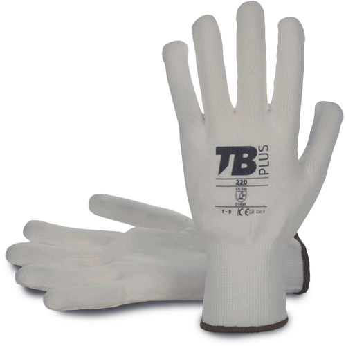 Bílé bezešvé nylonové rukavice. Pletené zápěstí. Úplet 13 gg.