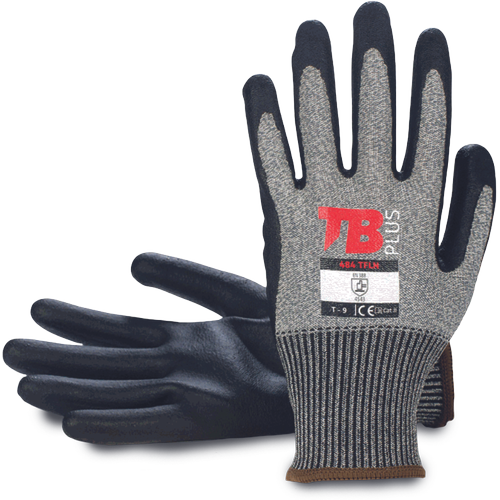 • rukavice ze šedého Tuffalene® úpletu a ze skleněných vláken • černá pěnová nitrilová vrstva na dlani • pletené zápěstí • hustota úpletu 13 GG