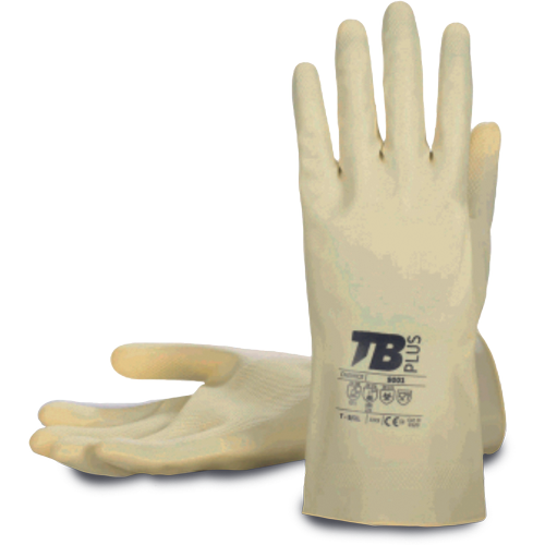 • béžová přírodní latexová rukavice • uvnitř chlorovaná úprava • rolovaná manžeta • tloušťka: 0,45 mm • celková délka: 30 cm