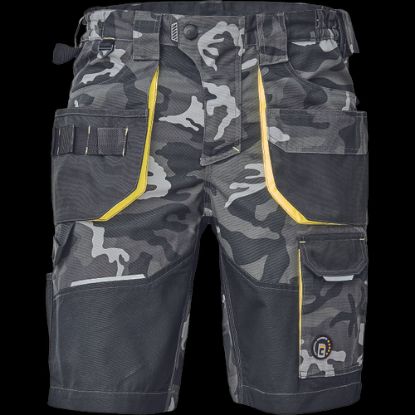 pánské pracovní šortky z elastického materiálu, 2 postranní kapsy, 2 vložitelné multifunkční kapsy na nářadí, "D" kroužek, 1 boční kapsa na nohavici s patkou, 1 kapsa na nohavici na zip, 2 nakládané zadní kapsy s patkou, dekorativní prošití