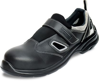 Bezpečnostní sandál s nekovovou tužinkou a aramidovou stélkou odolnou proti propíchnutí. Podešev z PU / TPU. Svršek z kvalitní lícové kůže.
